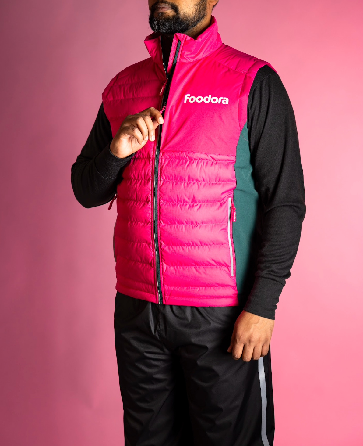 Máš raději vestu než bundu? Tak vyzkoušej naši novou unisex vestu v novém dvoubarevném foodora designu. Vesta se hodí spíše na období jaro / podzim.